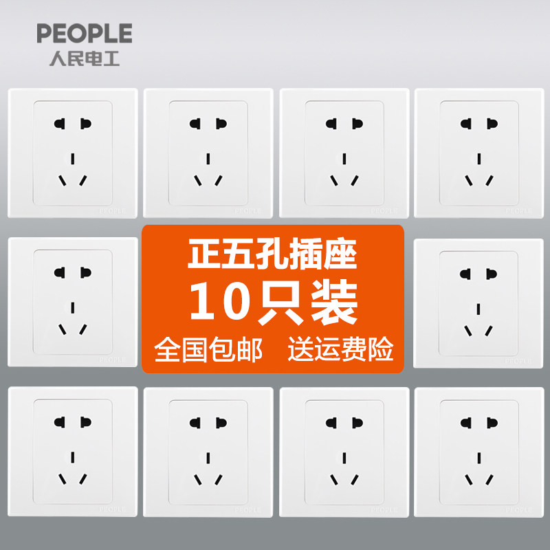 飞雕开关插座香槟金家用86五孔插座面板5孔暗装墙壁电源插座套装