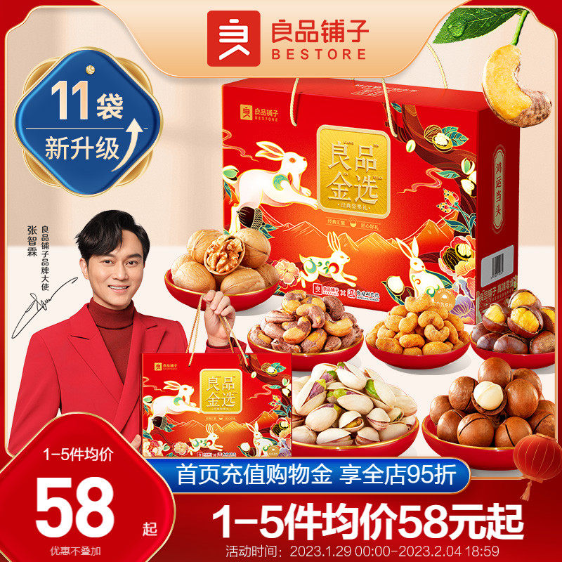 良品铺子纯坚果礼盒大礼包2056g/15袋干果整箱休闲零食