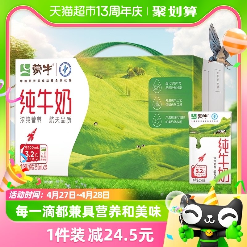 蒙牛纯牛奶全脂灭菌乳250ml*24盒整箱学生早餐奶效期最早【10月】