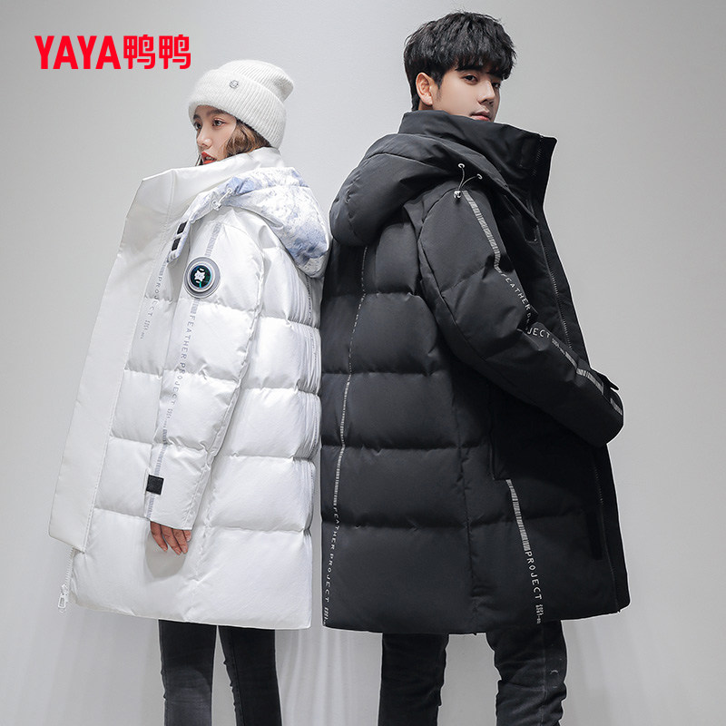 鸭鸭2022年冬季新羽绒服中长款男女连帽休闲时尚潮情侣保暖外套S